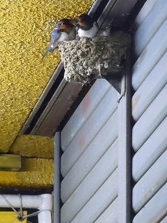 この間書いたツバメ夫婦の巣が今朝起きたら下に落っこちていました。ちょうど糞が落ちるところにダンボール箱がおいてあるのですがよく見ると巣のこわれたものと卵もわれていました。3~4こはあったようです。ちょこんと顔をだしてあたためていたんだと思います。 前の晩は主人が用事があって私が店を閉めたのでよけいにショックです。シャッターを下ろすときも気をつけてやったのですが・・・その時は顔を出してバイバイの挨拶もしたんですが・・・夜中の間に落っこちてしまったのでしょう。 2羽で巣のまわりをとんでいましたがもうここには戻ってこないのかなあ。もう少しでツバ子ちゃんたちに会えたのに・・・ かわいそうです。今度はもう少し安定したところに作ってね! |