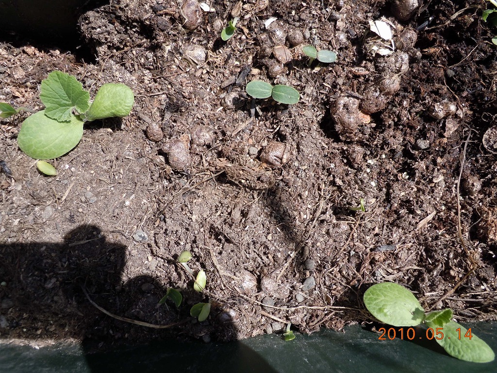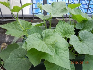 きゅうりだと思っていたのはそのままにしておきました。葉や茎が毛羽立っていてつるもでてきて青臭いにおいがします。どうやらきゅうりではないようです。私が思うにとうがんではないかなあ。