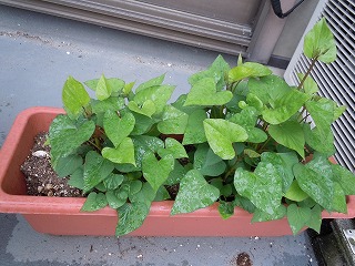 残った芋はプランターに埋めておきました。今は茎が伸びていくつかのつるができています。